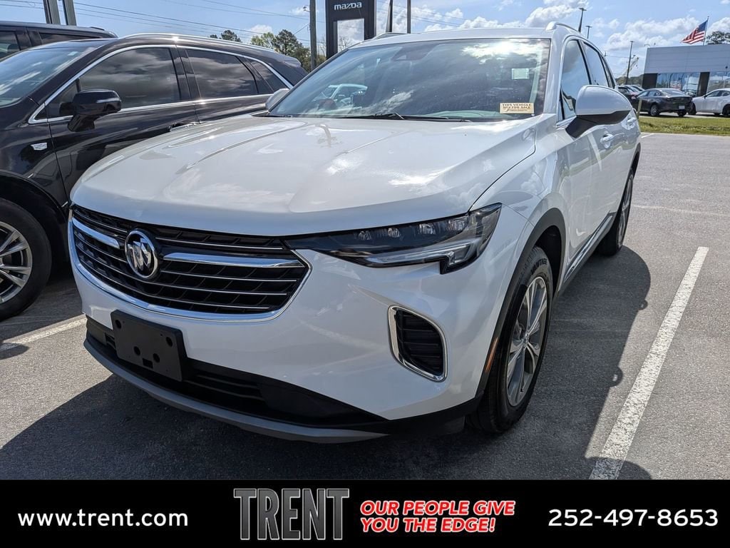 Clean CARFAX. Certified. Summit White 2023 Buick Envision Preferred AWD 9-Speed Automatic 2.0L Turbocharged Envision Preferred, 4D Sport Utility, 2.0L Turbocharged, 9-Speed Automatic, AWD, Summit White, Ebony Seats Cloth.Buick Certified Pre-Owned Details:* 172 Point Inspection* 24 months/24,000 miles (whichever comes first) Certified Pre-Owned Scheduled Maintenance Plan and 3 days/150 miles (whichever comes first) Vehicle Exchange Program. 1 month of OnStar Safety & Security Plan, Navigation Services, Remote Access Plan, and 1 month or 3GB of 4G LTE data (whichever comes first).* Warranty Deductible: $0* Roadside Assistance* Powertrain Limited Warranty: 72 Month/100,000 Mile (whichever comes first) from original in-service date* Vehicle History* Limited Warranty: 12 Month/12,000 Mile (whichever comes first) from certified purchase date* Transferable WarrantyThis Envision Preferred is nicely equipped with Preferred Equipment Group 1SC, Premium Seat Package (Driver 4-Way Power Lumbar Seat Adjuster), Envision Preferred, Buick Certified Pre-Owned Certified, 4D Sport Utility, 2.0L Turbocharged, 9-Speed Automatic, AWD, Summit White, Ebony Seats Cloth, 3.47 Final Drive Axle Ratio, 4-Wheel Disc Brakes, 6-Speaker Audio System Feature, 7 Speakers, 7-Speaker Audio System Feature w/Amplifier, 8-Way Power Driver Seat Adjuster, ABS brakes, Air Conditioning, Alloy wheels, AM/FM radio: SiriusXM, Apple CarPlay/Android Auto, Auto High-beam Headlights, Auto-dimming door mirrors, Auto-dimming Rear-View mirror, Automatic Emergency Braking, Automatic temperature control, Brake assist, Bumpers: body-color, Cloth w/Leatherette Seat Trim, Compass, Delay-off headlights, Deleted 3 Years of OnStar & Connected Services Plan, Driver door bin, Driver vanity mirror, Dual front impact airbags, Dual front side impact airbags, Electronic Stability Control, Emergency communication system: OnStar and Buick connected services capable, Following Distance Indicator, Forward Collision Alert, Four wheel independent suspension, Front anti-roll bar, Front Bin Center Console USB Ports, Front Bucket Seats, Front Center Armrest, Front dual zone A/C, Front Passenger 6-Way Manual Seat Adjuster, Front Pedestrian Braking, Front reading lights, Fully automatic headlights, Heated door mirrors, Heated front seats, Heated steering wheel, Illuminated entry, IntelliBeam Headlamp Control w/Auto High Beam, Knee airbag, Lane Keep Assist w/Lane Departure Warning, Low tire pressure warning, Not Equipped w/Driver & Fr Passenger Heated Seats, Not Equipped w/Rear Park Assist, Occupant sensing airbag, Outside temperature display, Overhead airbag, Overhead console, Panic alarm, Passenger door bin, Passenger vanity mirror, Power door mirrors, Power driver seat, Power Liftgate, Power steering, Power windows, Premium audio system: Buick Infotainment System, Radio data system, Radio: Buick Infotainment System AM/FM Stereo, Rear anti-roll bar, Rear reading lights, Rear seat center armrest, Rear window defroster, Rear window wiper, Remote keyless entry, Security system, SiriusXM Radio, Speed control, Split folding rear seat, Spoiler, Steering wheel mounted audio controls, Telescoping steering wheel, Tilt steering wheel, Traction control, Trip computer, USB Charging-Only Ports, Variably intermittent wipers, Wheels: 18 Aluminum w/Light Charcoal Met Finish, and Wireless Apple CarPlay/Wireless Android Auto. Recent Arrival! 22/29 City/Highway MPGGive us a call at 252-497-8653 to schedule your test drive and let us give you the edge!