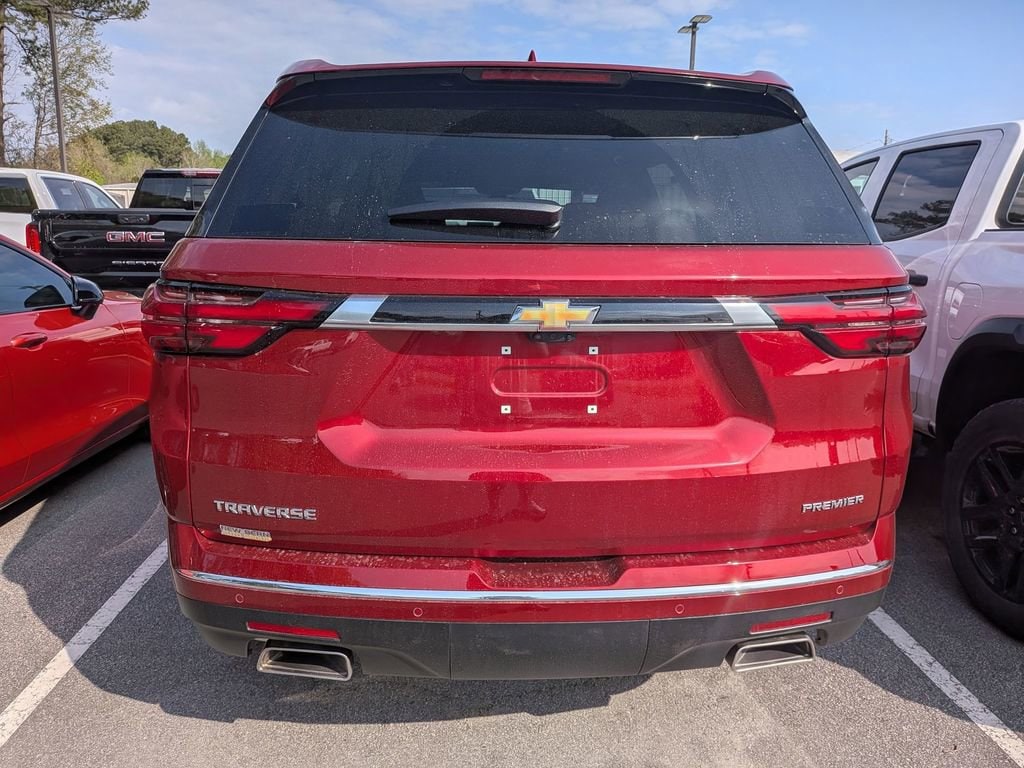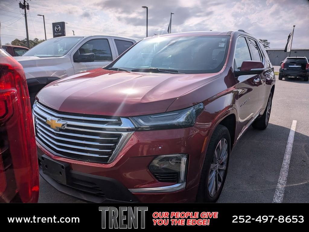 Clean CARFAX. CARFAX One-Owner. Certified. Radiant Red Tintcoat 2023 Chevrolet Traverse Premier FWD 9-Speed Automatic 3.6L V6 SIDI VVT Traverse Premier, 4D Sport Utility, 3.6L V6 SIDI VVT, 9-Speed Automatic, FWD, Radiant Red Tintcoat, Jet Black/Maple Sugar Leather.Chevrolet Certified Pre-Owned Details:* Vehicle History* Warranty Deductible: $0* Roadside Assistance* Transferable Warranty* 24 months/24,000 miles (whichever comes first) Certified Pre-Owned Scheduled Maintenance Plan and 3 days/150 miles (whichever comes first) Vehicle Exchange Program. SiriusXM 3-month trial subscription.* Limited Warranty: 12 Month/12,000 Mile (whichever comes first) from certified purchase date* Powertrain Limited Warranty: 72 Month/100,000 Mile (whichever comes first) from original in-service date* 172 Point InspectionThis Traverse Premier is nicely equipped with Front License Plate Bracket Mounting Package, Preferred Equipment Group 1LZ (Heated 2nd Row Outboard Position Seats, Heated Driver & Front Passenger Seats, and Ventilated Driver & Front Passenger Seats), Traverse Premier, Chevrolet Certified Pre-Owned Certified, 4D Sport Utility, 3.6L V6 SIDI VVT, 9-Speed Automatic, FWD, Radiant Red Tintcoat, Jet Black/Maple Sugar Leather, 10 Speakers, 3.49 Axle Ratio, 3rd row seats: split-bench, 4-Wheel Disc Brakes, 6-Way Power Front Passenger Seat, 8-Way Power Driver Seat Adjuster, ABS brakes, Air Conditioning, Alloy wheels, AM/FM radio: SiriusXM with 360L, Apple CarPlay/Android Auto, Auto High-beam Headlights, Auto-dimming door mirrors, Auto-dimming Rear-View mirror, Automatic temperature control, Bose Premium 10-Speaker Audio System Feature, Brake assist, Bumpers: body-color, Compass, Delay-off headlights, Driver door bin, Driver vanity mirror, Dual front impact airbags, Dual front side impact airbags, Electronic Stability Control, Emergency communication system, Exterior Parking Camera Rear, Four wheel independent suspension, Front anti-roll bar, Front Bucket Seats, Front Center Armrest, Front dual zone A/C, Front Passenger 2-Way Power Lumbar, Front reading lights, Fully automatic headlights, Garage door transmitter, Heated door mirrors, Heated front seats, Heated rear seats, Heated steering wheel, Illuminated entry, Leather steering wheel, Low tire pressure warning, Memory seat, Navigation System, Occupant sensing airbag, Outside temperature display, Overhead airbag, Overhead console, Panic alarm, Passenger door bin, Passenger vanity mirror, Perforated Leather-Appointed Seat Trim, Power door mirrors, Power Driver Lumbar Control, Power driver seat, Power Liftgate, Power passenger seat, Power steering, Power windows, Premium audio system: Chevrolet Infotainment 3 Plus, Radio data system, Radio: Chevrolet Infotainment 3 Plus System w/Navi, Rear air conditioning, Rear anti-roll bar, Rear reading lights, Rear window defroster, Rear window wiper, Remote keyless entry, Security system, SiriusXM w/360L, Speed control, Speed-sensing steering, Spoiler, Steering wheel memory, Steering wheel mounted audio controls, Tachometer, Telescoping steering wheel, Tilt steering wheel, Traction control, Trip computer, Turn signal indicator mirrors, Variably intermittent wipers, Ventilated front seats, Voltmeter, and Wheels: 20 Metallic Machined-Face Aluminum. Recent Arrival! Odometer is 34892 miles below market average! 18/27 City/Highway MPGGive us a call at 252-497-8653 to schedule your test drive and let us give you the edge!