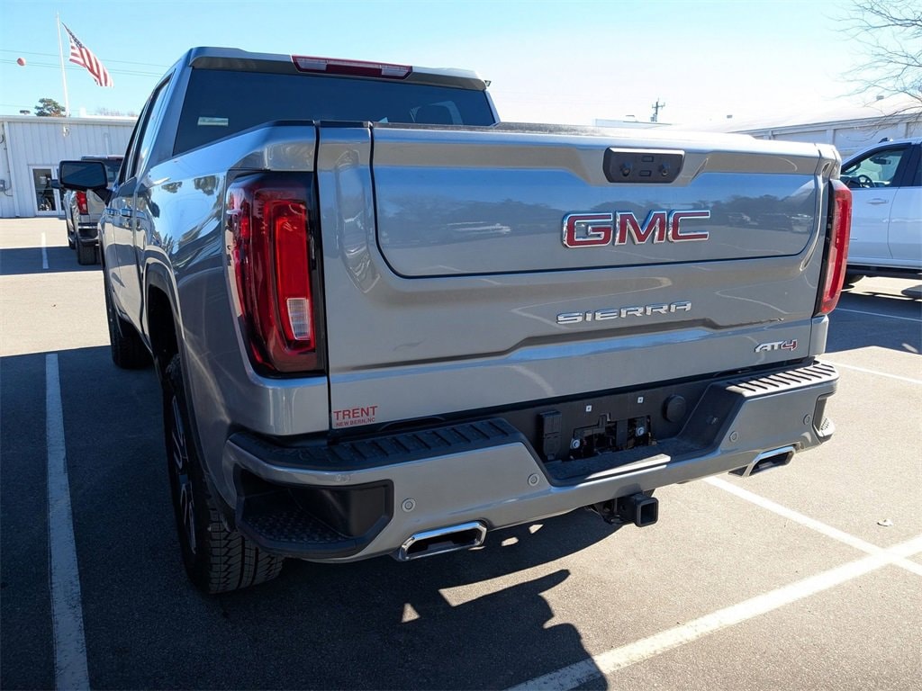 This Sierra 1500 AT4 is nicely equipped with Preferred Equipment Group 4SB (120-Volt Bed Mounted Power Outlet, 120-Volt Interior Power Outlet, 2 Charge/Data USB Ports Inside Center Console, 2 Type-C Charge-Only Rear USB Ports, 2 USB Ports, 220 Amp Alternator, Auto-Locking Rear Differential, Black Chrome Grille Insert Bars, Color-Keyed Carpeting Floor Covering, Deep-Tinted Glass, Electric Rear-Window Defogger, Floor-Mounted Center Console, Front Prem Floor Liners w/Removable Carpet Insert, Front Rain-Sensing Wipers, HD Surround Vision, Heated 2nd Row Outboard Seats, Heated Driver & Front Outboard Passenger Seating, Heavy-Duty Air Filter, Hill Descent Control, Hitch View, In-Vehicle Trailering System App, Integrated Trailer Brake Controller, Keyless Open & Start, LED Cargo Area Lighting, OnStar Services Capable, Perimeter Lighting, Power Door Locks, Power Front Passenger Windows w/Express Up/Down, Power Front Windows w/Driver Express Up/Down, Power Rake & Telescoping Steering Column, Power Rear Windows w/Express Down, Premium Bose 7-Speaker Sound System, Push Button Start, Rear Cross Traffic Braking, Rear Pedestrian Detection, Rear Prem Floor Liners w/Removable Carpet Insert, Rear Wheelhouse Liners, Red Recovery Hooks, Remote Vehicle Starter System, SiriusXM w/360L Trial Subscription, Spray-On Pickup Bedliner w/GMC Logo, Steering Wheel Audio Controls, Theft Deterrent System (Unauthorized Entry), Trailer Camera Provisions, Trailer Side Blind Zone Alert, Ultrasonic Front & Rear Park Assist, Ventilated Driver & Front Passenger Seats, Wi-Fi Hotspot Capable, and Wireless Charging), Trailering Package (Hitch Guidance), Sierra 1500 AT4, 4D Crew Cab, EcoTec3 6.2L V8, 10-Speed Automatic, 4WD, Sterling Metallic, Jet Black With Kalahari Accents Leather, 10-Way Power Driver Seat Adjuster w/Lumbar, 10-Way Power Passenger Seat Adjuster w/Lumbar, 170 Amp Alternator, 3.23 Rear Axle Ratio, 4-Wheel Disc Brakes, 7 Speakers, ABS brakes, Air Conditioning, Alloy wheels, AM/FM radio: SiriusXM with 360L, Apple CarPlay/Android Auto, Auto High-beam Headlights, Auto-dimming door mirrors, Auto-dimming Rear-View mirror, Automatic Emergency Braking, Automatic temperature control, Auxiliary External Transmission Oil Cooler, Block heater, Brake assist, Buckle to Drive, Bumpers: body-color, Compass, Delay-off headlights, Driver door bin, Driver Memory, Driver vanity mirror, Dual Active Exhaust, Dual front impact airbags, Dual front side impact airbags, Electronic Stability Control, Emergency communication system: OnStar, External Engine Oil Cooling, Following Distance Indicator, Forward Collision Alert, Front anti-roll bar, Front Bucket Seats, Front Center Armrest, Front dual zone A/C, Front fog lights, Front Pedestrian Braking, Front reading lights, Front wheel independent suspension, Fully automatic headlights, Heated door mirrors, Heated front seats, Heated rear seats, Heated steering wheel, Illuminated entry, IntelliBeam Automatic High Beam On/Off, Lane Keep Assist w/Lane Departure Warning, Low tire pressure warning, Memory seat, Navigation System, Occupant sensing airbag, Off-Road Suspension, Outside temperature display, Overhead airbag, Overhead console, Panic alarm, Passenger door bin, Passenger vanity mirror, Perforated Front Leather Seat Trim, Power door mirrors, Power driver seat, Power passenger seat, Power steering, Power windows, Radio data system, Radio: Premium GMC Infotainment Audio System, Rain sensing wipers, Rear reading lights, Rear seat center armrest, Rear step bumper, Rear window defroster, Remote keyless entry, Safety Alert Seat, Security system, Speed control, Speed-sensing steering, Split folding rear seat, Steering wheel mounted audi
