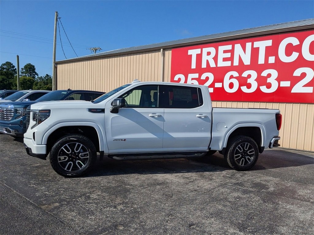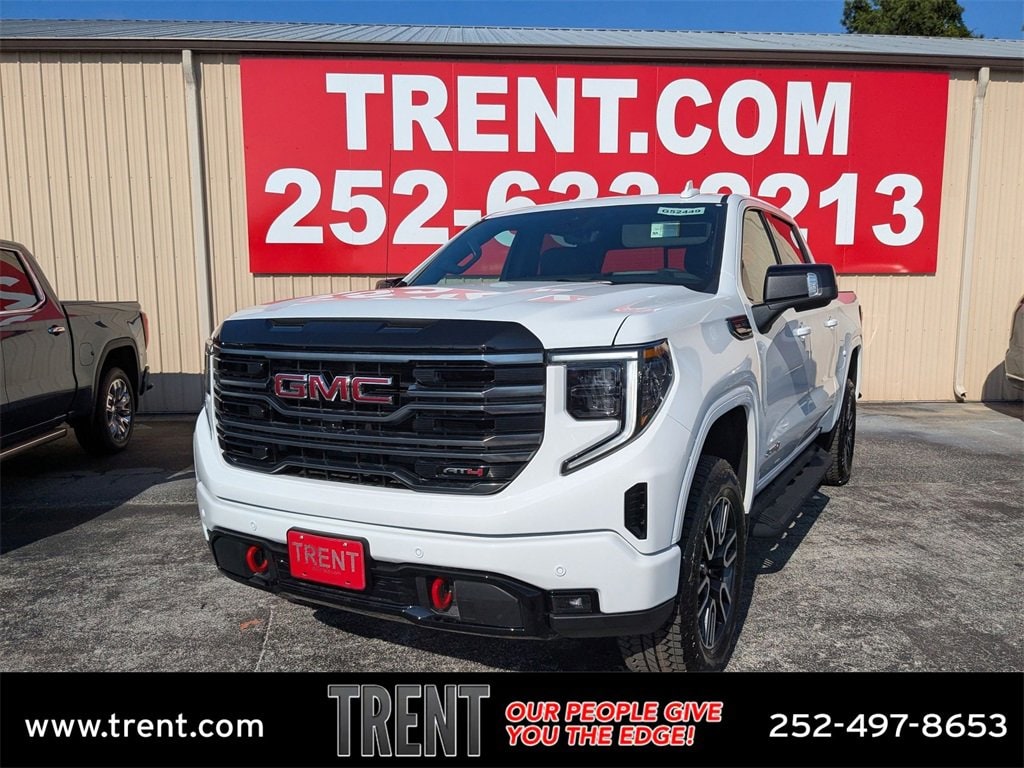 Summit White 2025 GMC Sierra 1500 AT4 4WD 10-Speed Automatic EcoTec3 6.2L V8 10-Speed Automatic, 4WD, Jet Black With Kalahari Accents Leather. Price includes: $2750 - Purchase Allowance. Exp. 11/03/2025 $500 - Bonus Cash. Exp. 11/03/2025
