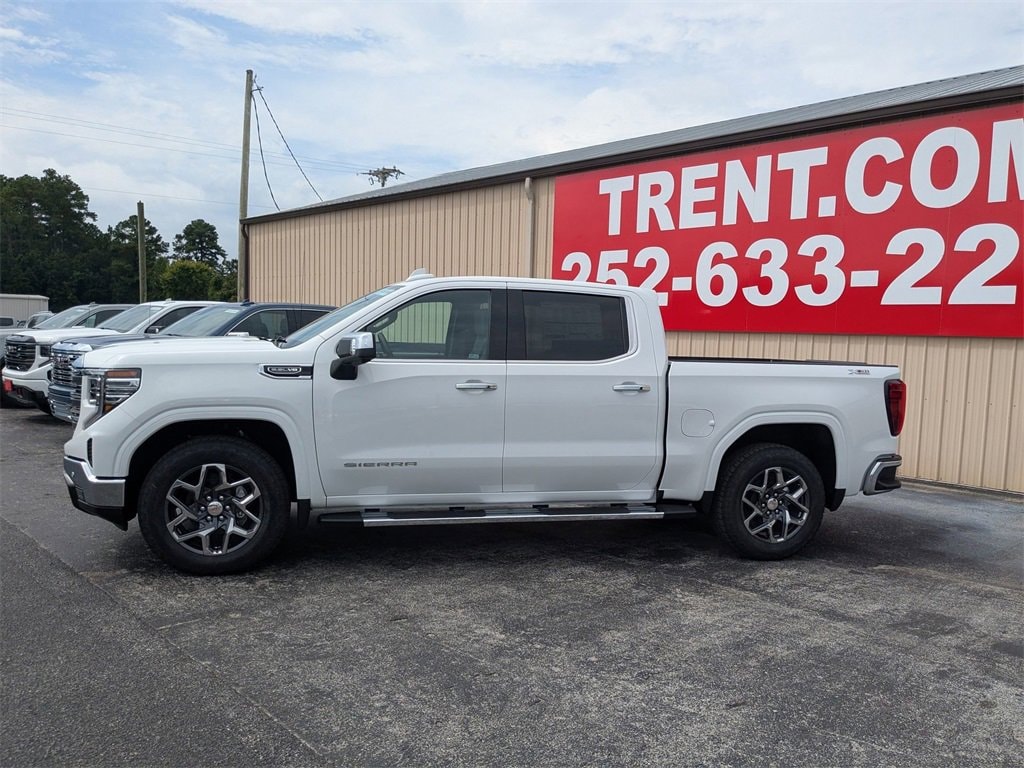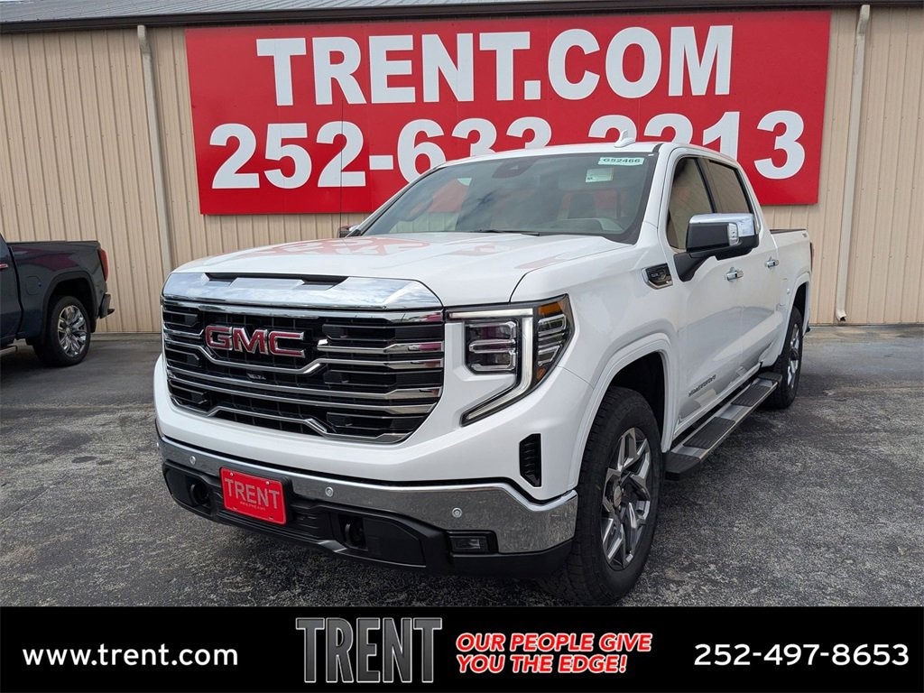Summit White 2025 GMC Sierra 1500 SLT 4WD 10-Speed Automatic EcoTec3 5.3L V8 10-Speed Automatic, 4WD, Dark Walnut/Slate Leather. Price includes: $1500 - Bonus Cash. Exp. 11/03/2025 $2750 - Purchase Allowance. Exp. 11/03/2025