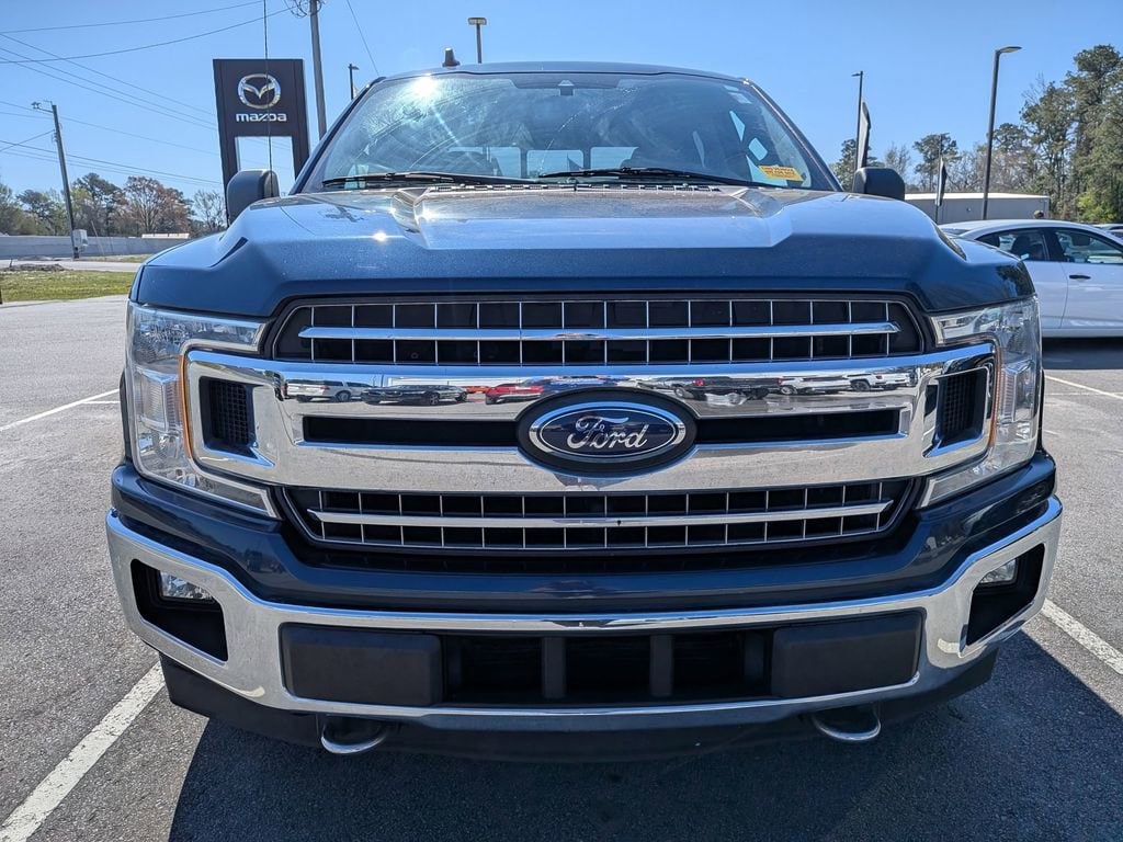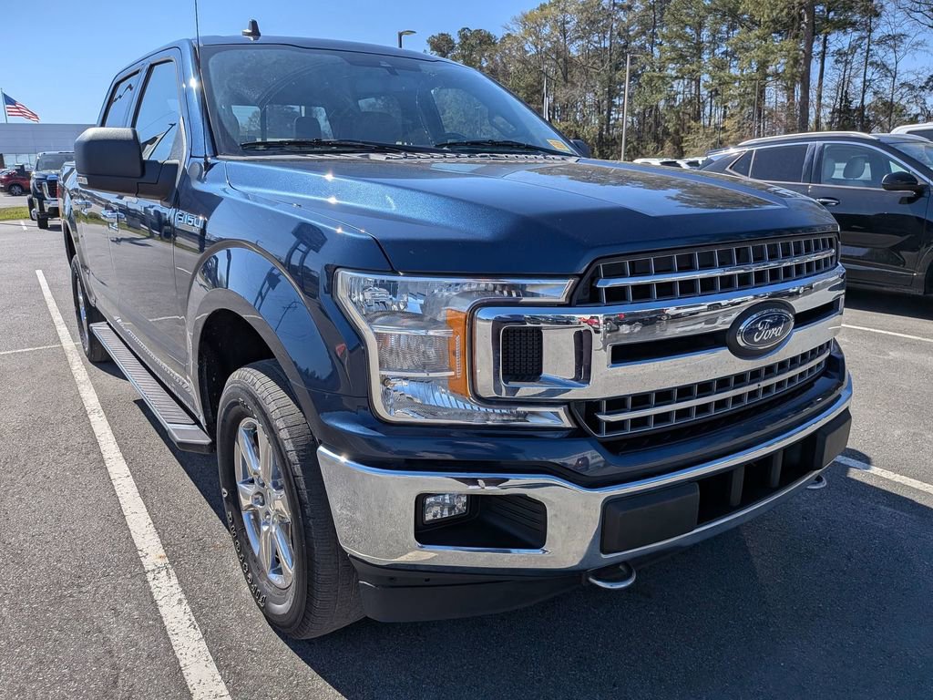 Clean CARFAX. CARFAX One-Owner. Blue 2019 Ford F-150 XLT 4WD 10-Speed Automatic 3.5L V6 EcoBoost F-150 XLT, 4D SuperCrew, 3.5L V6 EcoBoost, 10-Speed Automatic, 4WD, Blue, Medium Earth Gray.This F-150 XLT is nicely equipped with Equipment Group 302A Luxury (4.2 Productivity Screen in Instrument Cluster, Auto-Dimming Rear-View Mirror, Cloth 40/20/40 Front Seat, Fixed Backlight w/Privacy Glass, Heated Front Seats, Leather-Wrapped Steering Wheel, Power Glass Heated Sideview Mirrors, Power-Adjustable Pedals, Rear Under-Seat Storage, Rear Window Defroster, Remote Start System, and SiriusXM Radio), FX4 Off-Road Package (Tray Style Floor Liner), Trailer Tow Package (Pro Trailer Backup Assist), XLT Chrome Appearance Package (2-Bar Style Grille w/Chrome 2 Minor Bars, Chrome Door & Tailgate Handles w/Body-Color Bezel, Chrome Step Bars, Single-Tip Chrome Exhaust, and Wheels: 18 Chrome-Like PVD), XLT Power Equipment Group (LED Box Lighting and Power-Sliding Rear Window), F-150 XLT, 4D SuperCrew, 3.5L V6 EcoBoost, 10-Speed Automatic, 4WD, Blue, Medium Earth Gray, 110V/400W Outlet, 4-Wheel Disc Brakes, 6 Speakers, 8-Way Power Driver Seat, ABS brakes, Air Conditioning, Alloy wheels, AM/FM radio, AppLink/Apple CarPlay and Android Auto, Auto High-beam Headlights, Brake assist, Bumpers: chrome, Compass, Delay-off headlights, Driver door bin, Driver vanity mirror, Dual front impact airbags, Dual front side impact airbags, Electronic Stability Control, Emergency communication system: SYNC 3 911 Assist, Exterior Parking Camera Rear, Front anti-roll bar, Front Center Armrest w/Storage, Front fog lights, Front License Plate Bracket, Front wheel independent suspension, Fully automatic headlights, Illuminated entry, Low tire pressure warning, Occupant sensing airbag, Outside temperature display, Overhead airbag, Panic alarm, Passenger door bin, Passenger vanity mirror, Power door mirrors, Power steering, Power windows, Radio data system, Radio: AM/FM Stereo w/6 Speakers, Rear step bumper, Remote keyless entry, Reverse Sensing System, Security system, Speed control, Speed-sensing steering, Split folding rear seat, Steering wheel mounted audio controls, SYNC 3, Tachometer, Telescoping steering wheel, Tilt steering wheel, Traction control, Variably intermittent wipers, Voice-Activated Touchscreen Navigation, Voltmeter, and Wheels: 17 Silver Painted Aluminum. Recent Arrival!Give us a call at 252-497-8653 to schedule your test drive and let us give you the edge!