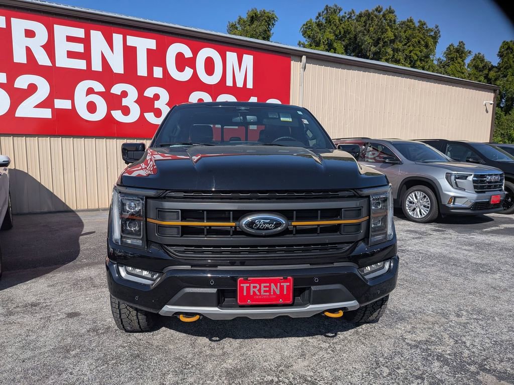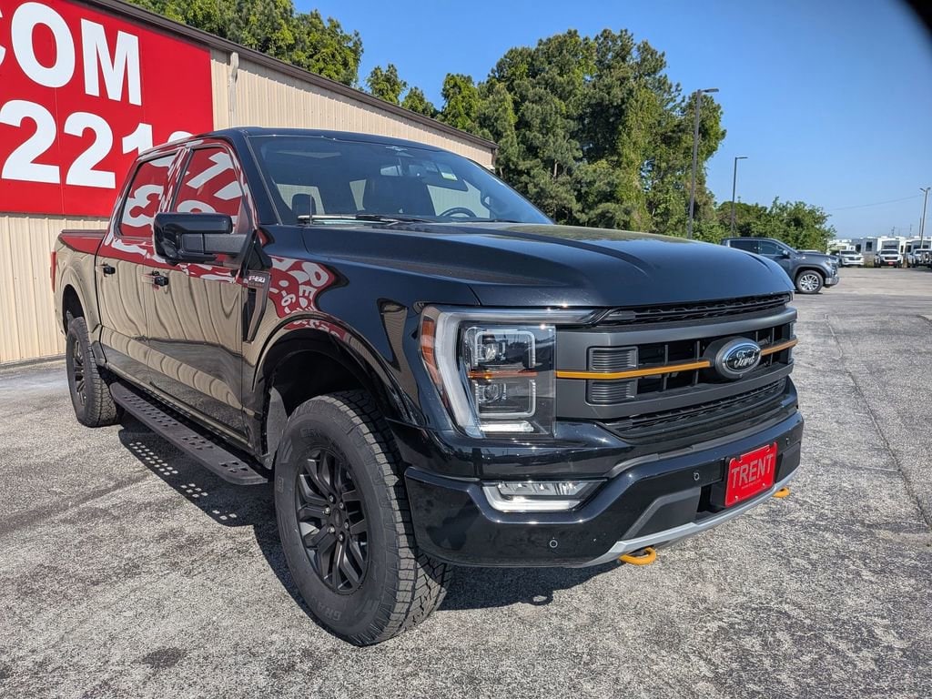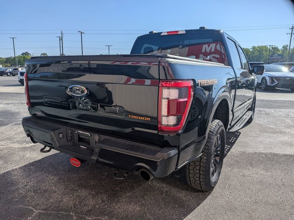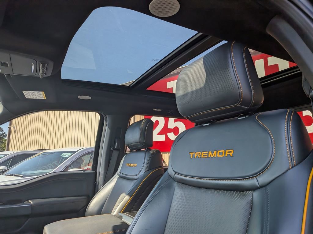 CARFAX One-Owner. Agate Black Metallic 2023 Ford F-150 Tremor Tremor 4WD 10-Speed Automatic 3.5L V6 EcoBoost F-150 Tremor Tremor, 4D SuperCrew, 3.5L V6 EcoBoost, 10-Speed Automatic, 4WD, Agate Black Metallic, Black w/Leather-Trimmed Bucket Seats, ABS brakes, Alloy wheels, Compass, Electronic Stability Control, Front dual zone A/C, Heated door mirrors, Heated front seats, Illuminated entry, Low tire pressure warning, Remote keyless entry, Traction control.This F-150 Tremor is nicely equipped with GVWR: 7,050 lbs Payload Package, F-150 Tremor Tremor, 4D SuperCrew, 3.5L V6 EcoBoost, 10-Speed Automatic, 4WD, Agate Black Metallic, Black w/Leather-Trimmed Bucket Seats, ABS brakes, Alloy wheels, Compass, Electronic Stability Control, Front dual zone A/C, Heated door mirrors, Heated front seats, Illuminated entry, Low tire pressure warning, Remote keyless entry, Traction control, 4-Wheel Disc Brakes, 6 Speakers, Air Conditioning, AM/FM radio: SiriusXM with 360L, Auto High-beam Headlights, Auto-dimming door mirrors, Automatic temperature control, Brake assist, Bumpers: body-color, Class IV Trailer Hitch Receiver, Delay-off headlights, Driver door bin, Dual front impact airbags, Dual front side impact airbags, Electronic Locking w/3.73 Axle Ratio, Emergency communication system: SYNC 4 911 Assist, Exterior Parking Camera Rear, Front anti-roll bar, Front Bucket Seats, Front Center Armrest, Front fog lights, Front reading lights, Front wheel independent suspension, Fully automatic headlights, Navigation system: Connected Navigation, Occupant sensing airbag, Outside temperature display, Overhead airbag, Overhead console, Panic alarm, Passenger door bin, Passenger vanity mirror, Power door mirrors, Power driver seat, Power passenger seat, Power steering, Power windows, Radio data system, Radio: AM/FM SiriusXM w/360L, Rear reading lights, Rear step bumper, Rear window defroster, Security system, Speed control, Speed-sensing steering, Split folding rear seat, Steering wheel mounted audio controls, SYNC 4 w/Enhanced Voice Recognition, Tachometer, Telescoping steering wheel, Tilt steering wheel, Trip computer, Turn signal indicator mirrors, Unique Sport Cloth 40/Console/40 Power Front Seat, Variably intermittent wipers, Voltmeter, and Wheels: 18 Alloy w/Dark Matte Finish.Give us a call at 252-497-8653 to schedule your test drive and let us give you the edge!