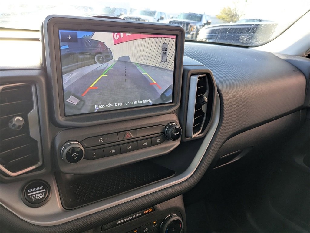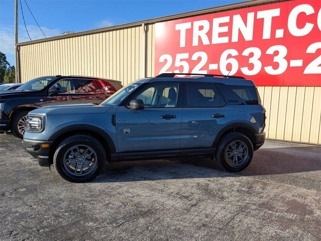 This Bronco Sport Big Bend is nicely equipped with Convenience Package (Front Driver/Passenger Seat Back Map Pockets, Heated Front Bucket Seats, LED Fog Lamps, Premium Wrapped Steering Wheel, Rear Parking Sensors, Universal Garage Door Opener (UGDO), and Wireless Charging Pad), Equipment Group 200A, Bronco Sport Big Bend, 4D Sport Utility, 1.5L EcoBoost, 8-Speed Automatic, 4WD, Azure Gray Metallic Tri-Coat, Navy Pier Cloth, 2nd Row Carpeted Seatback, 3.80 Axle Ratio, 4-Wheel Disc Brakes, 6 Speakers, ABS brakes, Air Conditioning, Alloy wheels, AM/FM radio: SiriusXM, AM/FM Stereo, Auto High-beam Headlights, Automatic temperature control, Brake assist, Compass, Delay-off headlights, Driver door bin, Driver vanity mirror, Dual front impact airbags, Dual front side impact airbags, Electronic Stability Control, Emergency communication system: SYNC 3 911 Assist, Four wheel independent suspension, Front anti-roll bar, Front Bucket Seats, Front Center Armrest, Front License Plate Bracket, Front reading lights, Fully automatic headlights, Heated door mirrors, Illuminated entry, Knee airbag, Low tire pressure warning, Occupant sensing airbag, Outside temperature display, Overhead airbag, Overhead console, Panic alarm, Passenger door bin, Passenger vanity mirror, Power door mirrors, Power steering, Power windows, Radio data system, Rear anti-roll bar, Rear reading lights, Rear seat center armrest, Rear window defroster, Rear window wiper, Remote keyless entry, Security system, SiriusXM, Speed control, Speed-sensing steering, Speed-Sensitive Wipers, Split folding rear seat, Steering wheel mounted audio controls, SYNC 3 Communications & Entertainment System, Tachometer, Telescoping steering wheel, Tilt steering wheel, Traction control, Trip computer, Unique Cloth Front Bucket Seats, Variably intermittent wipers, and Wheels: 17 Carbonized Gray-Painted Aluminum. 25/29 City/Highway MPG