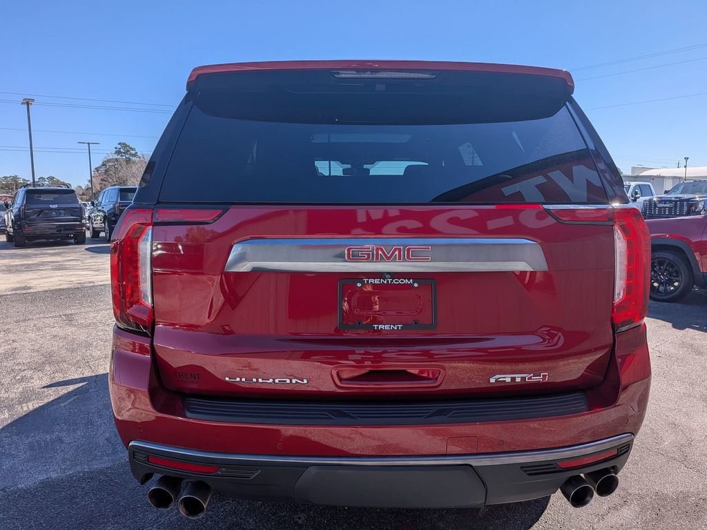 This Yukon AT4 is nicely equipped with License Plate Front Mounting Package, Max Trailering Package (Extra Capacity Cooling System), Preferred Equipment Group 4SB (2 Presets For Outside Rearview Mirrors, 3 Years of GMC Connected Services, 3rd Row 60/40 Power-Folding Split-Bench Seat, Automatic Stop/Start, Black Roof-Mounted Luggage Rack Side Rails, Bose 9-Speaker Stereo Audio System Feature, Bright Front & Rear Door Sill Plates, Front High-Approach Angle Fascia, Hands-Free Power Programmable Rear Liftgate, Heated & Ventilated Driver & Front Passenger Seats, Heated 2nd Row Outboard Position Seats, Heated Driver & Front Passenger Seats, Heated Steering Wheel, Heavy-Duty Air Filter, Hill Descent Control, Inside Rear-View Auto-Dimming Mirror, Outside Heated Power-Adjustable Mirrors, Power Release 2nd Row 60/40 Split-Folding Bench Seat, Power Tilt & Telescopic Steering Column, Red Horizontal-Mounted Recovery Hooks, Safety Alert Seat, Start/Stop System Disable Button, Universal Home Remote, and Wireless Charging), Technology Package (15 Diagonal Multi-Color Head-Up Display, HD Surround Vision, and Rear Pedestrian Alert), Yukon AT4, 4D Sport Utility, EcoTec3 6.2L V8, 10-Speed Automatic with Overdrive, 4WD, Cayenne Red Tintcoat, Jet Black Leather, 3.23 Rear Axle Ratio, 3rd row seats: split-bench, 4-Wheel Disc Brakes, 9 Speakers, ABS brakes, Adaptive suspension, Air Conditioning, Alloy wheels, AM/FM radio: SiriusXM with 360L, AM/FM Stereo, Apple CarPlay/Android Auto, Auto High-beam Headlights, Auto-dimming door mirrors, Auto-dimming Rear-View mirror, Auto-leveling suspension, Automatic Emergency Braking, Automatic temperature control, Brake assist, Bumpers: body-color, Compass, Delay-off headlights, Driver door bin, Driver vanity mirror, Dual Exhaust System, Dual front impact airbags, Dual front side impact airbags, Dual-Pane Panoramic Power Sunroof, Electronic Stability Control, Emergency communication system: OnStar and GMC Connected Services capable, Following Distance Indicator, Forward Collision Alert, Four wheel independent suspension, Front & Rear Park Assist, Front anti-roll bar, Front Bucket Seats, Front Center Armrest, Front dual zone A/C, Front fog lights, Front Pedestrian Braking, Front reading lights, Fully automatic headlights, Garage door transmitter, Heated door mirrors, Heated front seats, Heated rear seats, Heated steering wheel, Hitch Guidance w/Hitch View, Illuminated entry, Integrated Trailer Brake Controller, IntelliBeam Automatic High Beam On/Off, Lane Change Alert w/Side Blind Zone Alert, Lane Keep Assist w/Lane Departure Warning, Leather steering wheel, Low tire pressure warning, Magnetic Ride Control Suspension, Memory seat, Navigation System, Not Equip w/Ventilated Seat Cushion Blower Motor, Not Equipped w/4-Way Driver & Fr Pass Pwr Lumbar, Not Equipped w/Front & Rear Park Assist, Not Equipped w/Heated Rear Outboard Seats, Not Equipped w/Heated/Ventilated Front Seats, Not Equipped w/Steering Column Lock, Occupant sensing airbag, Outside temperature display, Overhead airbag, Overhead console, Panic alarm, Passenger door bin, Passenger vanity mirror, Perforated Leather Seating Surfaces, Power door mirrors, Power driver seat, Power Liftgate, Power passenger seat, Power Release 2nd Row Bucket Seats, Power steering, Power windows, Rain sensing wipers, Rear air conditioning, Rear anti-roll bar, Rear Cross Traffic Alert, Rear reading lights, Rear seat center armrest, Rear window defroster, Rear window wiper, Remote keyless entry, Roof rack: rails only, Security system, SiriusXM w/360L, Smart Trailer Integration Indicator, Speed control, Speed-sensing steering, Split folding rear seat, Spoiler, Steering wheel memory, Steer