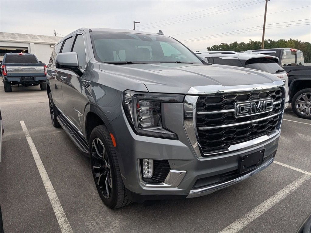 Clean CARFAX. Sterling Metallic 2023 GMC Yukon XL SLT 4WD 10-Speed Automatic with Overdrive EcoTec3 5.3L V8 Yukon XL SLT, 4D Sport Utility, EcoTec3 5.3L V8, 10-Speed Automatic with Overdrive, 4WD, Sterling Metallic, Dark Walnut/Slate Leather.