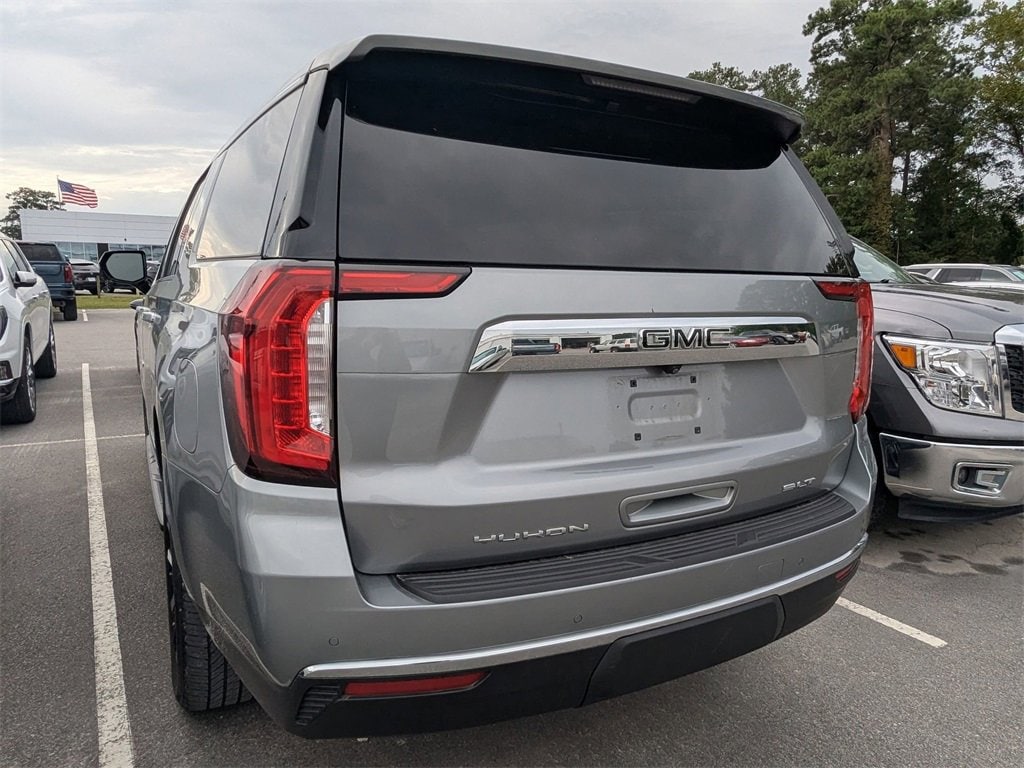 This Yukon XL SLT is nicely equipped with Floor Liner Package (LPO) (1st & 2nd Rows All-Weather Floor Liners (LPO), 3rd Row All-Weather Floor Liners (LPO), and All-Weather Cargo Mat (LPO)), License Plate Front Mounting Package, Max Trailering Package, Preferred Equipment Group 4SA (2 Presets For Power Driver Seat, Bose 9-Speaker Stereo Audio System Feature, Bright Chrome Bodyside Moldings, Bright Front & Rear Door Sill Plates, Chrome Door Handles w/Body-Color Strip, Hands-Free Power Programmable Rear Liftgate, Heated & Ventilated Driver & Front Passenger Seats, Heated Driver & Front Passenger Seats, Inside Rear-View Auto-Dimming Mirror, Safety Alert Seat, Universal Home Remote, and Wireless Charging), SLT Luxury Package (2 Presets For Outside Rearview Mirrors, 3rd Row 60/40 Power-Folding Split-Bench Seat, Adaptive Cruise Control, Enhanced Automatic Emergency Braking, HD Surround Vision, Heated 2nd Row Outboard Position Seats, Heated Steering Wheel, Outside Heated Power-Adjustable Mirrors, Power Release 2nd Row 60/40 Split-Folding Bench Seat, Power Tilt & Telescopic Steering Column, and Rear Pedestrian Alert), SLT Premium Package (Dual-Pane Panoramic Power Sunroof), Yukon XL SLT, 4D Sport Utility, EcoTec3 5.3L V8, 10-Speed Automatic with Overdrive, 4WD, Sterling Metallic, Dark Walnut/Slate Leather, 3.23 Rear Axle Ratio, 3rd row seats: split-bench, 4-Wheel Disc Brakes, 9 Speakers, ABS brakes, Air Conditioning, Alloy wheels, AM/FM radio: SiriusXM with 360L, AM/FM Stereo, Apple CarPlay/Android Auto, Auto High-beam Headlights, Auto-dimming Rear-View mirror, Automatic Emergency Braking, Automatic temperature control, Black Grille w/Chrome Surround (LPO), Bodyside moldings, Brake assist, Bumpers: body-color, Compass, Delay-off headlights, Driver door bin, Driver vanity mirror, Dual front impact airbags, Dual front side impact airbags, Electronic Stability Control, Emergency communication system: OnStar and GMC connected services capable, Extra Capacity Cooling System, Floor Console, Following Distance Indicator, Forward Collision Alert, Four wheel independent suspension, Front & Rear Park Assist, Front anti-roll bar, Front Bucket Seats, Front Center Armrest, Front dual zone A/C, Front fog lights, Front Pedestrian Braking, Front reading lights, Fully automatic headlights, Garage door transmitter, Heated door mirrors, Heated front seats, Hitch Guidance w/Hitch View, Illuminated entry, Integrated Trailer Brake Controller, IntelliBeam Automatic High Beam On/Off, Lane Change Alert w/Side Blind Zone Alert, Lane Keep Assist w/Lane Departure Warning, Low tire pressure warning, Memory seat, Navigation System, Occupant sensing airbag, Outside temperature display, Overhead airbag, Overhead console, Panic alarm, Passenger door bin, Passenger vanity mirror, Perforated Leather-Appointed Seating, Power door mirrors, Power driver seat, Power Liftgate, Power passenger seat, Power Release 2nd Row Bucket Seats, Power steering, Power windows, Premium Smooth Ride Suspension, Rain sensing wipers, Rear air conditioning, Rear anti-roll bar, Rear Cross Traffic Alert, Rear reading lights, Rear seat center armrest, Rear window defroster, Rear window wiper, Remote keyless entry, Roof rack: rails only, Security system, SiriusXM w/360L, Smart Trailer Integration Indicator, Speed control, Speed-sensing steering, Split folding rear seat, Spoiler, Sport Pedal Cover Kit (LPO), Steering wheel mounted audio controls, Tachometer, Telescoping steering wheel, Tilt steering wheel, Traction control, Trailer Side Blind Zone Alert, Trip computer, Variably intermittent wipers, Ventilated front seats, Voltmeter, Wheels: 20 x 9 6-Spoke Polished Aluminum, Wheels: 22 Black w/Selecti