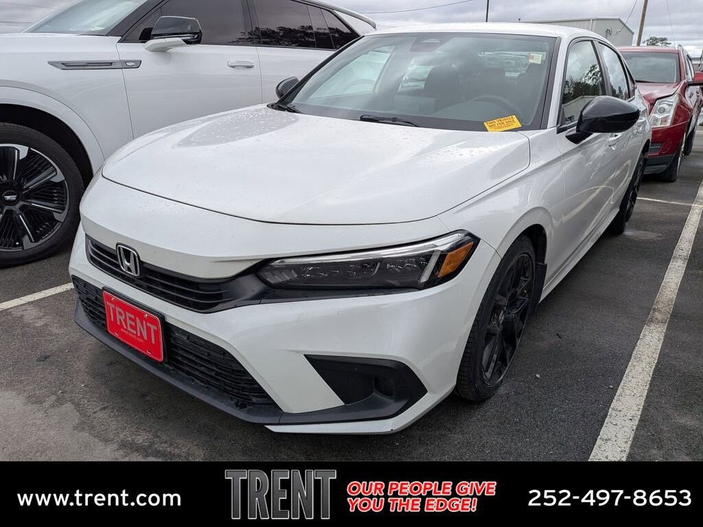Clean CARFAX. White 2022 Honda Civic Sport sport FWD CVT 2.0L I4 DOHC 16V i-VTEC Civic Sport sport, 4D Sedan, 2.0L I4 DOHC 16V i-VTEC, CVT, FWD, White, Black Cloth.This Civic Sport is nicely equipped with Civic Sport sport, 4D Sedan, 2.0L I4 DOHC 16V i-VTEC, CVT, FWD, White, Black Cloth, 4-Wheel Disc Brakes, 8 Speakers, ABS brakes, Adaptive Cruise Control: Adaptive Cruise Control (ACC) with Low-Speed Follow, Air Conditioning, Alloy wheels, AM/FM radio, Apple CarPlay/Android Auto, Auto High-beam Headlights, Automatic temperature control, Brake assist, Bumpers: body-color, Cloth Seat Trim, Delay-off headlights, Driver door bin, Driver vanity mirror, Dual front impact airbags, Dual front side impact airbags, Electronic Stability Control, Emergency communication system: HondaLink, Exterior Parking Camera Rear, Forward collision: Collision Mitigation Braking System (CMBS) + FCW mitigation, Four wheel independent suspension, Front anti-roll bar, Front Bucket Seats, Front Center Armrest, Front reading lights, Fully automatic headlights, Illuminated entry, Knee airbag, Leather Shift Knob, Leather steering wheel, Low tire pressure warning, Occupant sensing airbag, Outside temperature display, Overhead airbag, Panic alarm, Passenger door bin, Passenger vanity mirror, Power door mirrors, Power steering, Power windows, Radio data system, Radio: 180-Watt AM/FM Audio System, Rear anti-roll bar, Rear side impact airbag, Rear window defroster, Remote keyless entry, Security system, Speed control, Speed-sensing steering, Steering wheel mounted audio controls, Tachometer, Telescoping steering wheel, Tilt steering wheel, Traction control, Trip computer, and Wheels: 18 Gloss Black Alloy. Recent Arrival! Odometer is 47128 miles below market average! 30/37 City/Highway MPGGive us a call at 252-497-8653 to schedule your test drive and let us give you the edge!Awards:* NACTOY 2022 North American Car of the Year