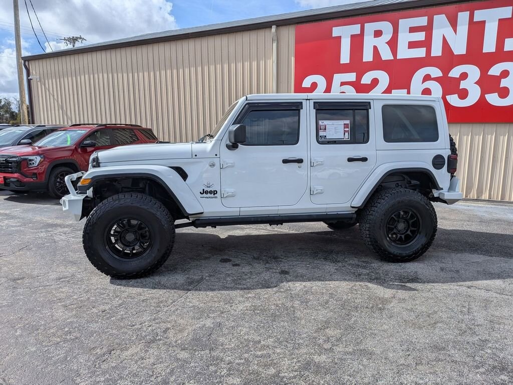 This Wrangler Unlimited Sahara Altitude is nicely equipped with 8.4 Radio & Premium Audio Group (1-Year SiriusXM Guardian Trial, 4G LTE Wi-Fi Hot Spot, 5-Year SiriusXM Traffic Service, 5-Year SiriusXM Travel Link Service, 8.4 Touchscreen Display, Alpine Premium Audio System, Auto-Dimming Rear-View Mirror, Emergency/Assistance Call, For Details, Visit DriveUconnect.com, GPS Navigation, HD Radio, Radio: Uconnect 4C Nav w/8.4 Display, SiriusXM Traffic Plus, and SiriusXM Travel Link), Cold Weather Group (Heated Front Seats and Heated Steering Wheel), Safety Group (Blind Spot & Cross Path Detection and ParkSense Rear Park Assist System), Trailer Tow & HD Electrical Group (240 Amp Alternator, 7 & 4 Pin Wiring Harness, 700 Amp Maintenance Free Battery, Auxiliary Switches, and Class II Receiver Hitch), 1-Year SiriusXM Radio Service, 3.45 Rear Axle Ratio, 4-Wheel Disc Brakes, 8 Speakers, ABS brakes, Air Conditioning, Alloy wheels, AM/FM radio: SiriusXM, Apple CarPlay, Apple CarPlay/Android Auto, Automatic temperature control, Aux Battery, Body Color 3-Piece Hard Top, Brake assist, Cloth Low-Back Bucket Seats, Compass, Delay-off headlights, Driver door bin, Driver vanity mirror, Dual front impact airbags, Dual front side impact airbags, Electronic Stability Control, Front anti-roll bar, Front Bucket Seats, Front Center Armrest w/Storage, Front dual zone A/C, Front fog lights, Front reading lights, Fully automatic headlights, Garage door transmitter, Google Android Auto, GPS Antenna Input, Heated door mirrors, Heavy Duty Suspension w/Gas Shocks, Illuminated entry, Integrated roll-over protection, Integrated Voice Command w/Bluetooth, Leather steering wheel, Low tire pressure warning, MOPAR Black Tube Steps, Non-Lock Fuel Cap w/o Discriminator, Occupant sensing airbag, Outside temperature display, Panic alarm, ParkView Rear Back-Up Camera, Passenger door bin, Passenger vanity mirror, Power door mirrors, Power steering, Power windows, Radio data system, Radio: Uconnect 4 w/7 Display, Rear anti-roll bar, Rear reading lights, Remote keyless entry, Remote Proximity Keyless Entry, Remote Start System, Security system, Speed control, Split folding rear seat, Steering wheel mounted audio controls, Stop-Start Dual Battery System, Tachometer, Telescoping steering wheel, Tilt steering wheel, Traction control, Trip computer, Variably intermittent wipers, Voltmeter, and Wheels: 18 x 7.5 Polished w/Gray SpokeS. Recent Arrival!
