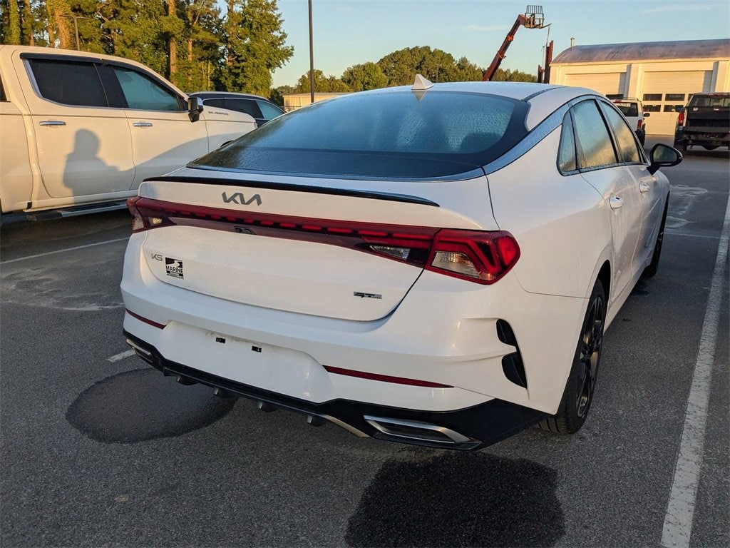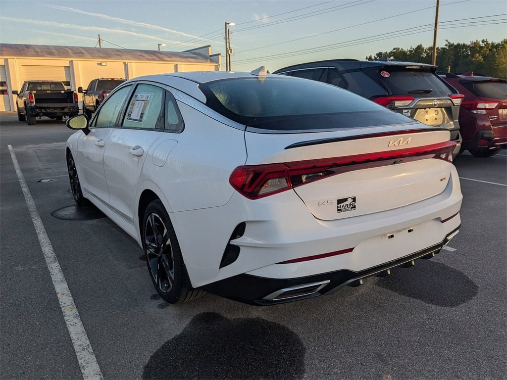 This K5 GT-Line is nicely equipped with GT-Line Premium Package (Forward Collision Avoidance-Assist, Highway Driving Assist, LED Projection Headlamps, and Smart Cruise Control w/Stop & Go), K5 GT-Line, 4D Sedan, 1.6L I4 DGI Turbocharged DOHC 16V LEV3-ULEV70 180hp, 8-Speed Automatic, FWD, Glacial White Pearl, Black Cloth, 4-Wheel Disc Brakes, 6 Speakers, ABS brakes, Air Conditioning, Alloy wheels, AM/FM radio: SiriusXM, Apple CarPlay & Android Auto, Auto High-beam Headlights, Automatic temperature control, Brake assist, Bumpers: body-color, Carpeted Floor Mats, Cloth/SynTex Seat Trim, Delay-off headlights, Driver door bin, Driver vanity mirror, Dual front impact airbags, Dual front side impact airbags, Electronic Stability Control, Four wheel independent suspension, Front anti-roll bar, Front Bucket Seats, Front Center Armrest, Front dual zone A/C, Front fog lights, Front reading lights, Fully automatic headlights, Heated door mirrors, Heated Front Bucket Seats, Heated front seats, Illuminated entry, Knee airbag, Leather steering wheel, Low tire pressure warning, Navigation System, Occupant sensing airbag, Outside temperature display, Overhead airbag, Overhead console, Panic alarm, Passenger door bin, Passenger vanity mirror, Power door mirrors, Power driver seat, Power steering, Power windows, Radio data system, Radio: AM/FM/MP3 Audio System, Rear anti-roll bar, Rear seat center armrest, Rear side impact airbag, Rear window defroster, Remote keyless entry, Security system, Speed control, Speed-sensing steering, Split folding rear seat, Spoiler, Sport steering wheel, Steering wheel mounted audio controls, Tachometer, Telescoping steering wheel, Tilt steering wheel, Traction control, Trip computer, Turn signal indicator mirrors, Variably intermittent wipers, and Wheels: 18 Gloss Black Machined Finish Alloy. Recent Arrival! Odometer is 9764 miles below market average! 27/37 City/Highway MPG