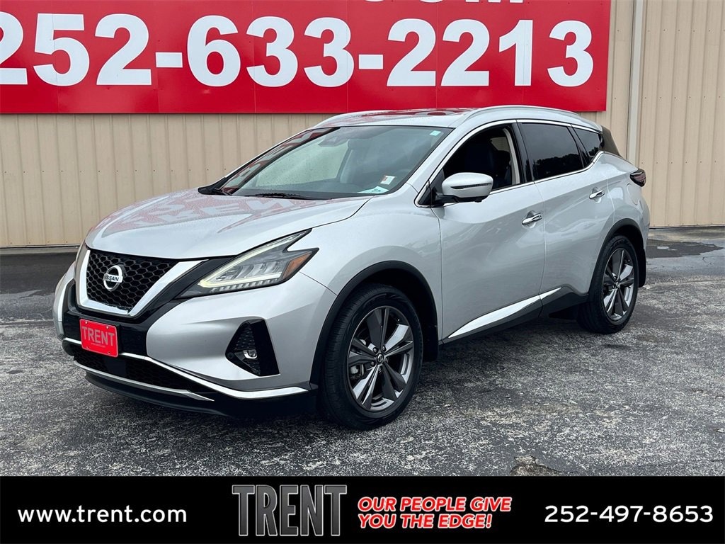 This Murano Platinum is nicely equipped with Cargo Package (Cargo Area Protector, Cargo Net, First Aid Kit, and Retractable Cargo Cover), Murano Platinum, 4D Sport Utility, 3.5L V6 DOHC 24V, CVT with Xtronic, FWD, Pearl White Tricoat, Graphite Leather, 11 Speakers, 4-Wheel Disc Brakes, 4.667 Axle Ratio, ABS brakes, Air Conditioning, Alloy wheels, AM/FM radio: SiriusXM, AM/FM/CD/MP3/WMA Audio System, Auto High-beam Headlights, Auto tilt-away steering wheel, Auto-dimming Rear-View mirror, Automatic temperature control, Blind Spot Warning, Brake assist, Bumpers: body-color, Carpeted Floor Mats & Carpeted Cargo Mat, CD player, Child-Seat-Sensing Airbag, Delay-off headlights, Driver door bin, Driver vanity mirror, Dual front impact airbags, Dual front side impact airbags, Electronic Stability Control, Emergency communication system: NissanConnect Services (first 6 months included), Exterior Parking Camera Rear, Four wheel independent suspension, Front anti-roll bar, Front Bucket Seats, Front Center Armrest, Front dual zone A/C, Front fog lights, Front reading lights, Fully automatic headlights, Garage door transmitter: HomeLink, Heated & Ventilated Front Bucket Seats, Heated door mirrors, Heated front seats, Heated rear seats, Heated steering wheel, Illuminated entry, Illuminated Kick Plates, Illuminated Kick Plates (PIO), Knee airbag, Low tire pressure warning, Memory seat, Navigation system: NissanConnect Navigation, NissanConnect featuring Apple CarPlay and Android Auto, NissanConnect Services Powered By SiriusXM, Occupant sensing airbag, Outside temperature display, Overhead airbag, Overhead console, Panic alarm, Passenger door bin, Passenger vanity mirror, Power door mirrors, Power driver seat, Power Liftgate, Power moonroof, Power passenger seat, Power steering, Power windows, Radio data system, Rear anti-roll bar, Rear Bumper Protector, Rear reading lights, Rear seat center armrest, Rear side impact airbag, Rear window defroster, Rear window wiper, Remote keyless entry, Roof rack: rails only, Security system, Semi-Aniline Leather-Appointed Seat Trim, Speed control, Speed-sensing steering, Speed-Sensitive Wipers, Splash Guards, Split folding rear seat, Spoiler, Steering wheel memory, Steering wheel mounted audio controls, Tachometer, Telescoping steering wheel, Tilt steering wheel, Traction control, Trip computer, Turn signal indicator mirrors, Variably intermittent wipers, Ventilated front seats, and Wheels: 20 Dark Hyper Silver. Odometer is 31870 miles below market average! 20/28 City/Highway MPG