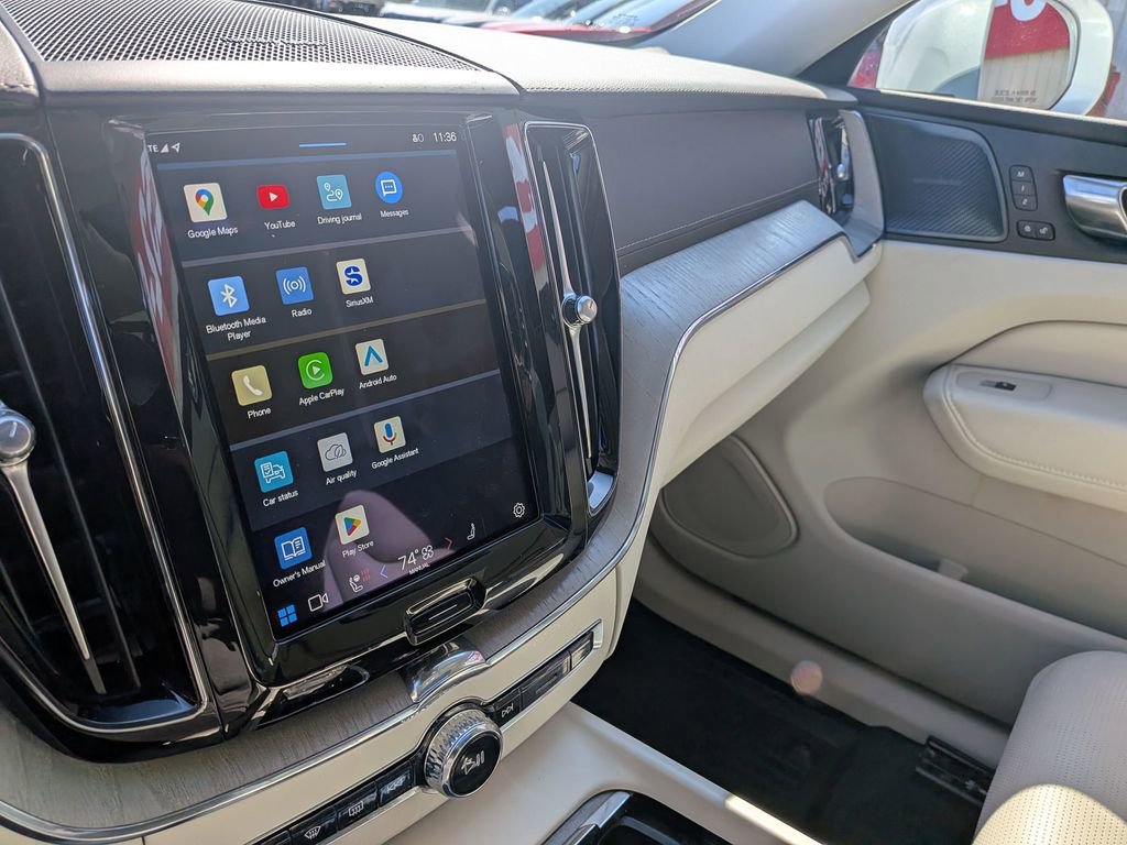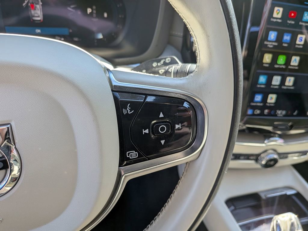 This XC60 B6 Ultimate Bright Theme is nicely equipped with Climate Package (Heated Rear Seats and Heated Steering Wheel), Protection Package (Cargo Tray and Rubber Floor Mats), XC60 B6 Ultimate Bright Theme, 4D Sport Utility, 2.0L I4, Automatic with Geartronic, AWD, Crystal White, Blond Leather, 14 Speakers, 4-Wheel Disc Brakes, ABS brakes, Air Conditioning, Alloy wheels, AM/FM radio: SiriusXM, Anti-whiplash front head restraints, Apple CarPlay, Auto High-beam Headlights, Auto-dimming door mirrors, Auto-dimming Rear-View mirror, Automatic temperature control, Brake assist, Bumpers: body-color, Delay-off headlights, Driver door bin, Driver vanity mirror, Dual front impact airbags, Dual front side impact airbags, Electronic Stability Control, Emergency communication system: Volvo Cars App w/4 Year Subscription, Exterior Parking Camera Rear, Four wheel independent suspension, Front anti-roll bar, Front Bucket Seats, Front Center Armrest, Front dual zone A/C, Front fog lights, Front reading lights, Fully automatic headlights, Garage door transmitter: HomeLink, Genuine wood console insert, Genuine wood dashboard insert, harman/kardon® Speakers, Heads-Up Display, Heated & Ventilated Front Bucket Seats, Heated door mirrors, Heated front seats, Illuminated entry, Knee airbag, Low tire pressure warning, Memory seat, Mud Flaps: Front & Rear, Navigation System, Occupant sensing airbag, Outside temperature display, Overhead airbag, Panic alarm, Passenger door bin, Passenger vanity mirror, Perforated Nappa Leather Upholstery, Power door mirrors, Power driver seat, Power moonroof, Power Operated Tailgate, Power passenger seat, Power steering, Power windows, Radio data system, Radio: harman/kardon Premium Audio System, Rain sensing wipers, Rear air conditioning, Rear anti-roll bar, Rear dual zone A/C, Rear fog lights, Rear reading lights, Rear seat center armrest, Rear window defroster, Rear window wiper, Remote keyless entry, Security system, Speed control, Split folding rear seat, Spoiler, Steering wheel mounted audio controls, Tachometer, Telescoping steering wheel, Tilt steering wheel, Traction control, Trip computer, Turn signal indicator mirrors, Variably intermittent wipers, Ventilated front seats, Wheels: 20 5-Multi Spoke Black Diamond Cut Alloy, and Wheels: 21 5-V Spoke Black Diamond Cut Alloy. 21/27 City/Highway MPG